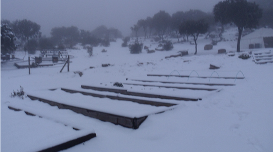 Si seguís nuestra web, sabréis que tenemos los cinco bancales de nuestro huerto dispuestos para sementar y plantar. Pero, a decir verdad, esta semana apenas hemos llevado a cabo labor que valiera la pena, pues, igual que a nuestros abuelos, también nos ha tocado llorar, aunque, más por blando que por duro, ciertamente. ¡Pobrecillos, cuantos febreros como éste habrán tenido que soportar…!