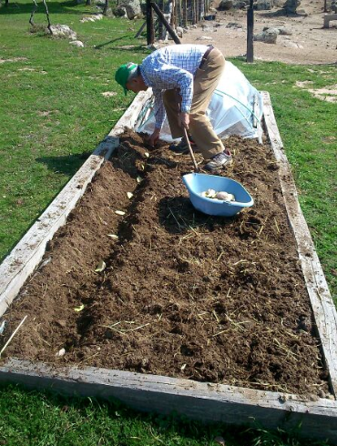 Esto nos distrajo de lo que veníamos a hacer. Hoy nos tocaba sementar las patatas en el bancal número 5, que ya teníamos predispuesto. La tierra se encontraba en perfectas condiciones, tanto el grado de humedad como la asimilación de los nutrientes. Nos parece que era el momento adecuado. El cielo dirá.