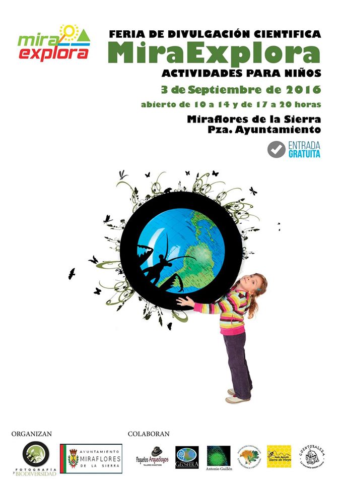 El próximo día 3 de septiembre, se celebra en Miraflores de la Sierra una nueva edición de Miraexplora, “Feria de Divulgación Científica para niños y mayores”, organizada por Biodiversidad Virtual y el Ayuntamiento de Miraflores de la Sierra.