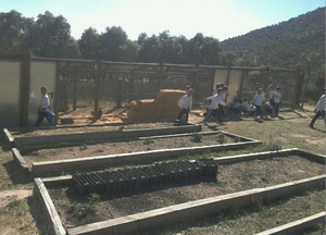 Nuestro huerto escolar consta de cinco bancales de 5 x 1´20 mts., formados por gruesos durmientes para contener la tierra.